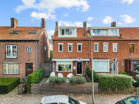 De woning heeft zowel een zonnige voortuin als een diepe achtertuin, met achterin een berging die ideaal is voor fietsen, tuinspullen of hobby’s.